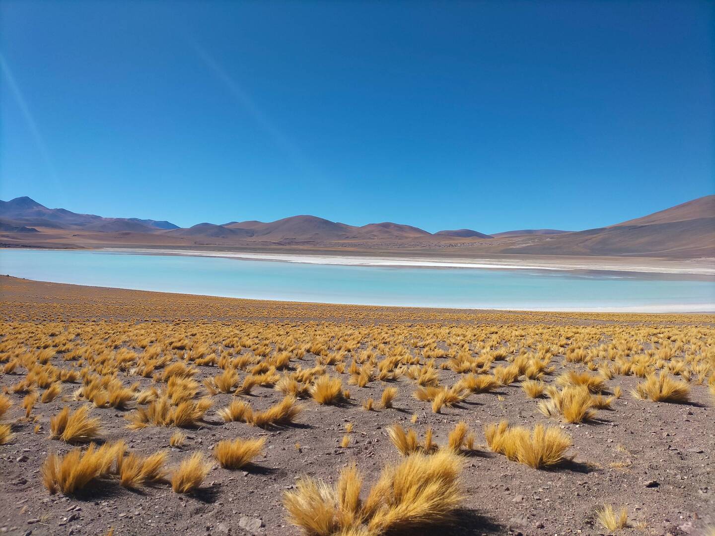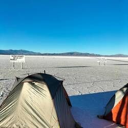La nuit est froide. On s'en rend particulièrement compte le matin en voyant les bords de la lagune gelés et les toiles des tentes givrées. Aujourd'hui, on va atteindre le point le plus haut du trek avec une vue incroyable sur tous les alentours et les 3 volcans. On mange au sommet pour se reposer et bien profiter de la superbe vue avant la descente. L'avoine du matin, le riz thon du soir et les sandwichs du midi dénotent avec nos petits plats bien cuisinés des semaines précédentes. Le soir on poussera jusqu'à une zone de camping le long d'une rivière, le dernier point d'eau avant la fin du trek.