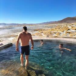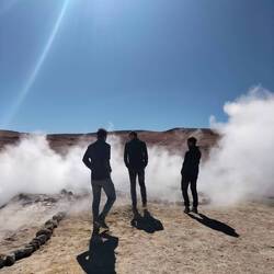 Une fois le groupe au complet, on se balade pendant deux jours dans les environs d'Atacama et on se régale de paysages plus beaux et impressionnant les uns que les autres : des lacs roses et bleus, des reliefs montagneux acérés et des geysers. Le deuxième jour on trouve même des sources d'eau chaude naturelles et on profite d'un bain parfois tiède et parfois brûlant. C'était un bonheur ! Atacama c'est aussi le lieu où on a enfin pu croiser deux copines de Grenoble qu'on espérait voir : Lella et Salomé. Le dernier jour, alors que les américaines étaient parties tôt le matin, nous avons loué des vélos tous les 6 pour aller faire un tour dans la superbe Garganta del Diablo (gorge du diable). C'était super impressionnant, les formations rocheuses donnent l'impression d'être sur une autre planète et quel plaisir de pouvoir prendre un peu de vitesse en VTT à la descente. Tard dans la nuit, après avoir observé le ciel magnifique et être à moitié morts de froid, on reprend la route en bus en direction de Potosi.