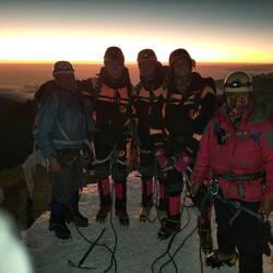 Jour 2 : On s'est levé à minuit, c'était pas la meilleure nuit de ma vie, je ne suis même pas sûr d'avoir dormi deux heures... C'est donc un peu fatigués qu'on s'est préparés qu'on a mangé un petit déjeuner et qu'on s'est chaudement vêtus : legging + pantalon de sport + pantalon d'alpinisme pour le bas et tee-shirt + polaire + doudoune + veste d'alpinisme pour le haut. On a commencé l'ascension vers 1h15. Au bout d'à peine 15 minutes de marche on était dans la neige donc on a enfilé nos crampons et on a sorti les piolets. De 5200m jusqu'à 5700 on s'est sentis super bien. On était bien sûr accrochés par une corde à nos guides qui donnaient le rythme devant. Comme on avançait très lentement on a pu marcher sans se fatiguer et on a cru qu'on allait arriver en haut sans problème. Mais à partir de 5700 ça s'est gâté : l'altitude ça rigole pas et on a tous les 3 commencé à se sentir plus ou moins mal, maux de ventre et de tête, vision trouble... Edouard a bien failli rendre son petit déjeuner juste avant d'arriver au sommet. On est arrivé en haut avant le lever du soleil donc on est restés une petite demi-heure histoire de profiter du point de vue avec un peu de lumière. On était bien cuits mais ça faisait très plaisir d'avoir réussi. On a mis 5 heures pour monter, arrivée 6h15 et début de la descente peu avant 7h. La descente c'était une autre galère : j'étais un peu au bout du rouleau donc j'ai marché comme un robot sans penser à rien et j'étais bien content d'arriver au refuge à 8h30. Là bas on s'est posés un moment pour boire une bonne soupe et faire une petite sieste puis on a chargé les sacs avec tout ce qu'on avait laissé pour l'ascension et on est redescendu jusqu'au camp de base. Ça a fait du bien d'arriver, on était KO de chez KO mais vraiment contents. On a bu un bon maté puis on a attendu le mini bus qui nous a ramené à La Paz où on a rejoint Guillaume en milieu d'après-midi. Ça a été une expérience super intense et l'un des plus gros défis physiques de ma vie. Heureusement qu'on avait du super matériel, à part aux pieds et aux mains on n'a pas eu froid alors qu'il faisait entre -10 et -15.