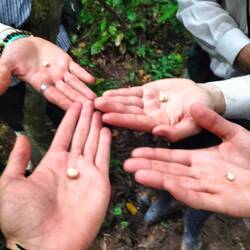 Au programme du dernier jour dans la Selva nous avons continué de nous balader au coeur de cette dense forêt, Jimmy nous a encore montré un tas de choses et nous avons aperçu une grenouille et un serpent. Nous avons aussi pu tester la pêche au piranha avec une ligne à main et de retour au camp nous avons participé à un petit atelier d'artisanat en fabriquant bagues et colliers à base de noix récoltées sur le chemin.