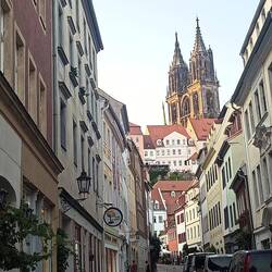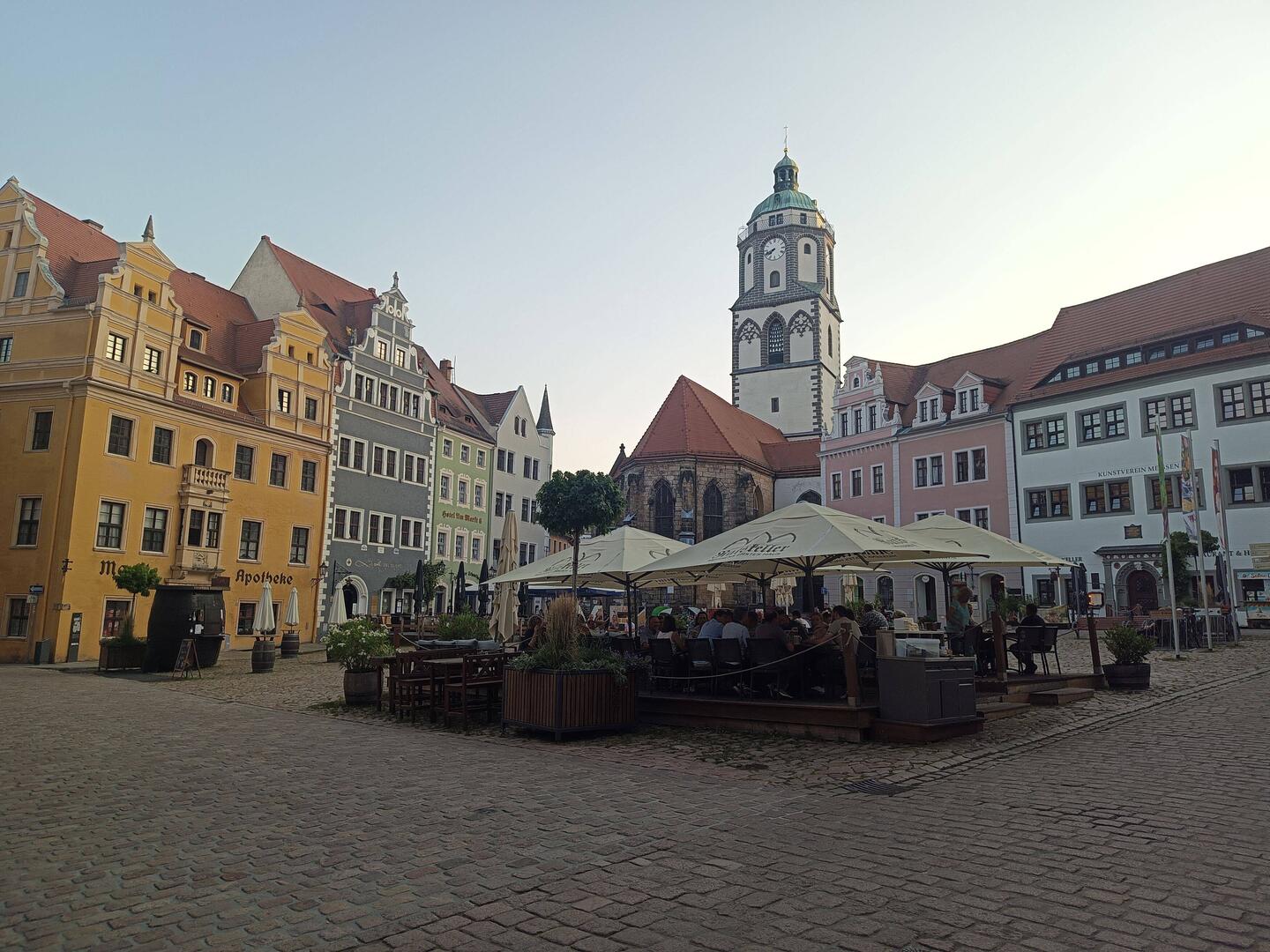 Meißen hatten wir auf der Hinfahrt schon für die Rückreise vorgemerkt und so sind wir also um 16:00 auf einem Campingplatz 4 km vor der Altstadt angekommen. Nach einem Kaffee brechen wir zu Fuß auf, essen gut bei dem goldenen Löwen und machen dann noch einen Stadtrundgang. Es ist reizvoll und besser als gedacht.