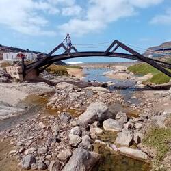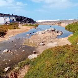 Auf der Nordseite der Strandbucht gibt es eine begehbare Naturbrücke, die weit ins Meer ragt. Dort brechen sich die Wellen spektakulär.
