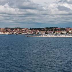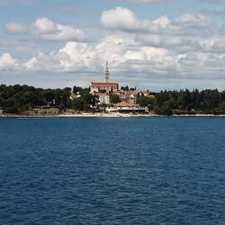 Wir genießen einen Eiscafé mit Blick auf die Altstadt und laufen anschließend noch bis zu dem terrassierten Hotel. Auch von dieser Seite sieht Rovinj reizend aus