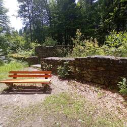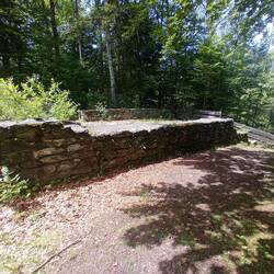 Im Gestrüpp glatt gehauene 5 m hohe Felswände, ca. 20 m lang. Was das wohl mal war? Zweifelsfrei von Menschen gemacht. Aber kein Zweck mehr erkennbar, außer es war Teil eines Wohnplatzes.