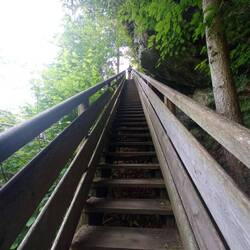 Kurz vor Deutschland dann noch ein Wasserfall. Insgesamt 470 Stufen führten uns hinauf. Oben war dann noch eine Burgruine, aber sehr gelitten. Der Wasserfall war schön, der Schatten der Bäume tatOkumaya devam et