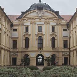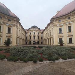 Das Wetter ist gruselig, aber in Austerlitz machen wir bei dem Schloss Halt und bevor es aus Eimern schüttet, können wir noch einen kleinen Rundgang schaffen