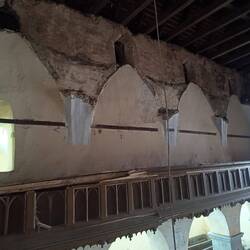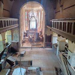 Wenn wir schon einmal im Ort sind, haben wir auch diese Wehrkirche angeschaut. Sie hat ein wunderschönes altes Portal, das offen stand und von dem Gottesdienst drang schöner Gesang und OrgelspielBaca lagi