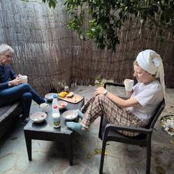 Als wir gestern ankamen, waren Eier, Brot, Apfelsinen und Kaffee und Gewürze vorbereitet. Gerade die Apfelsinen sind mega.