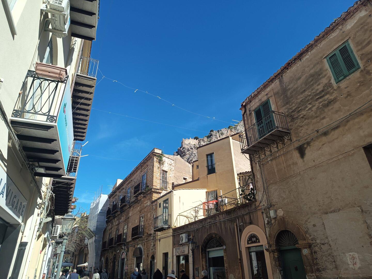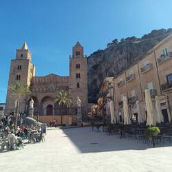 Wir holen früh unseren kleinen Fiat ab und fahren nach Cefalu. Dort finden wir einen Parkplatz (?) und laufen im Ort bis zur Kathedrale und dann noch zum Hafen. Dort essen wir unser Sandwich und aufLeggi altro