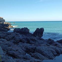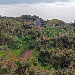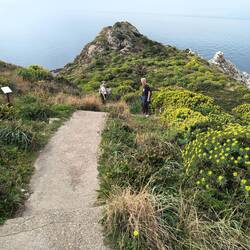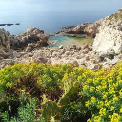 Bei strahlendem Sonnenschein laufen wir zum Botanischen Garten, kommen an der normannischen Kirche vorbei, die wir auch von innen anschauen und machen kurz vor dem Garten eine Pause am Meer und essenLeggi altro