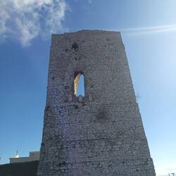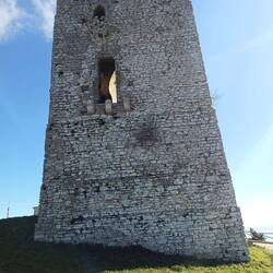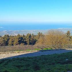 Auf der Rückfahrt fahren wir noch einen 814 m hohen Berg hoch, offensichtlich ein Pilgerweg, oben eine Ruine und jede Menge Funkmasten. Sehr steil erst die Straße, dann der Fußweg, gigantisch derLeggi altro