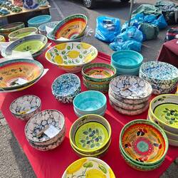 Heute erst in Roses über den Sonntagsmarkt spaziert, war enttäuschend, nur Händler mit Textilien und Taschen, kein Obst, kein Gemüse, keine Chorizo...... .🥲