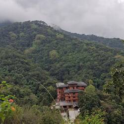 Eine abenteuerliche Fahrt mit Dendi Sherpa und dem Motorrad (max speed 30 km/h) zum Himalaya Viewpoint.