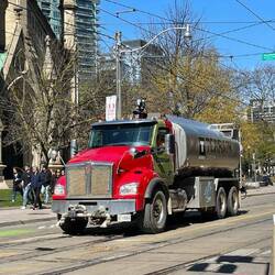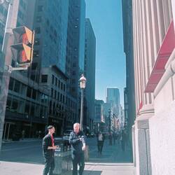Sguardo in giù alle scarpe nuove e in su alla foresta di grattacieli che ci sovrasta. Intanto percorriamo Young Street ( l'arteria più lunga del mondo), arriviamo alla Piccadilly Circus di Toronto,Læs mere