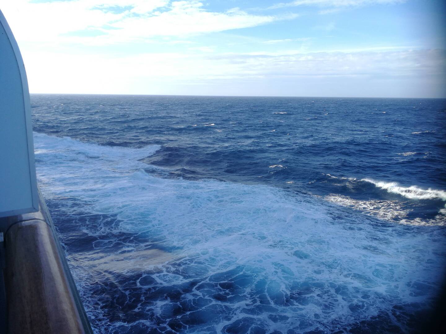 Apparently the sea swell is confused and heavy the sea state is moderate temperature 14 and winds force 8 and I just got 12 tricks in bridge can't be bad