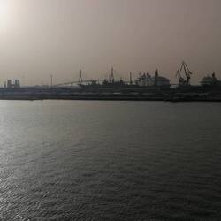 Yes it is still dark here due to an early arrival at our penultimate destination but as you can see at a cargo terminal they have provided a shuttle boat which takes under 5 minutes to cross but 40Leia mais