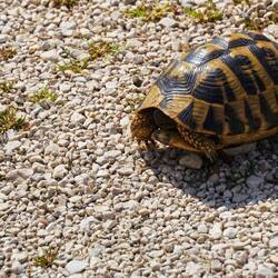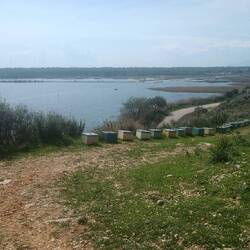 Nahe der Lagune gibt's auch drei Geocaches. Einen an einer Kapelle finde ich. An Nummer 2 geht es weit und steil bergauf, am Weg stehen etliche Beuten und es summt nur so um meinen Kopf. Ich breche lieber ab.