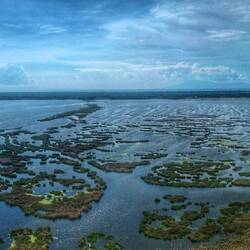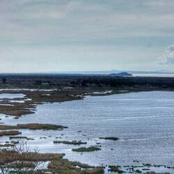 In Metochi am Rande des Nationalparks machen wir eine Kaffeepause. Hinter dem Ort taucht links der Straße der Strofyliawald mit seinen beeindruckenden Schirmpinien auf. Es ist der größte Pinienwald Griechenlands. Rechts der Straße sind die ersten Ausläufer der Lagune zu sehen, wir können hier Flamingos beobachten. Die Prokopos-Lagune ist 370 Hektar große und hat eine Tiefe von weniger als anderthalb Metern.