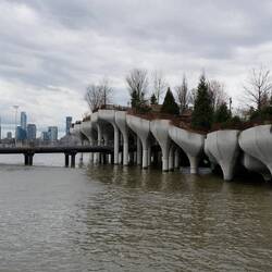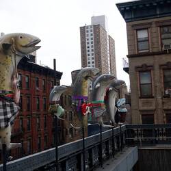 Am Freitag fahren wir dann zuerst zum Times Square, da sollten wir am besten an Tickets für eine Broadway-Show kommen. Viele Ticketverkäufer bzw. Agenten sind unterwegs und preisen ihre Dienste an, so richtig überzeugend sind die alle nicht. Wir gehen ein paar Schritte weiter und da stehen wir vor dem Schoenfeld-Theater! Da müssen wir hin! Wir gehen dort direkt zum Schalter, und tatsächlich gibt es Karten, zwar nicht für heute wie geplant, freitags ist keine Show, aber für morgen. Wir kaufen die Karten für die Show „The Notebook“ und freuen uns schon, in „unserem“ Theater eine Show zu sehen. Weiter gehen wir zum Hudson River, da gibt es eine tolle Promenade und einen „hochgelegten“ Park, „the High Line“, das wollten wir sehen. Fast am gesamten Hudson River entlang ist eine Promenade mit viel Platz für Jogger und Fahrradfahrer, das kannten wir noch nicht. Von der High Line gehen wir dann in den Chalsea Farmers Market, gerade als die Wolken sich zusammenziehen und es ein paar Tropfen Regen gibt – passt ganz gut. Nachdem es aufgehört hat zu regnen, schauen wir uns noch den Island Park an. Dieser ist auf Stelzen in den Hudson River hineingebaut. Eine wirklich interessante moderne Architektur. Weiter geht es dann nach Soho, wir haben bei Guruwalk eine Tour gebucht und müssen um 15:00 am Treffpunkt sein. Es soll durch Soho, Little Italy und Chinatown gehen.