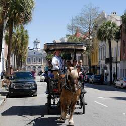 Nach einem wunderschönen Sonnenaufgang über der Schilfgrasbucht und einem guten Pancake-Frühstück sind wir in einer guten halben Stunde im Stadtzentrum von Charleston. Das Visitor Center bietet im Parkhaus Extraparkplätze für Wohnmobile. Das ist sehr zentral und komfortabel für uns. Es ist Palmsonntag, und so besuchen wir einen Gottesdienst in einer lutheranischen Kirche. Das Kirchengebäude ist eine schöne alte Holzkonstruktion und der Pfarrer predigt seht enthusiastisch. Nach dem Gottesdienst spricht eine alte Dame Thomas direkt an und erzählt ganz unvermittelt wie schrecklich es sei, dass Trump wieder gewählt würde. Man könne doch keine Gesellschaft auf Lügen aufbauen. Und das von einer konservative alten Dame in der Kirche in einem wirklichen Gebiet der Trump-Anhänger. Interessant. Wir besichtigen einige der in dem Reiseführer aufgeführten sehenswerten Gebäude und kommen immer tiefer in das French Quater. Es ist faszinierend. Kaum Autoverkehr, enge Straßen mit Kopfsteinpflastern, ganze Straßenzüge welche die Südstaatenarchitektur der Belle Epoque aufweisen. Man fühlt sich in die Zeit zurückversetzt oder direkt in dem Film ‚Vom Winde verweht’ . Es ist total ruhig und man hört das Gezwitscher von Vögeln. Dazu die vom spanischen Moos behängten Bäume. Das ist schon wirklich beeindruckend. Dazu der blaue Himmel und der helle Sonnenschein. Das passt alles zusammen. Ab und zu biegt eine Kutsche um die Ecke, welche Touristen durch das French Quater fährt. Ein toller Gesamteindruck. Sobald wir jedoch an die Wasserfront kommen, bläst der Wind wieder unbarmherzig und eisekalt. Nachdem wir uns einige Stunden die Füße plattgelaufen haben, machen wir in einem irischen Restaurant eine Pause und bestellen ein frühes Abendessen. Ein guter Burger und ein Reuben mit Sauerkraut, eben amerikanisch. Wir fahren aus Charleston raus und verlassen diese eindrucksvolle Südstaatenstadt, die uns ganz für sich eingenommen hat, in Richtung Boat Ramp südlich von Charleston. Noch ein kleiner Spaziergang zum Sonnenuntergang und wir haben eine ruhige Nacht.Les mer