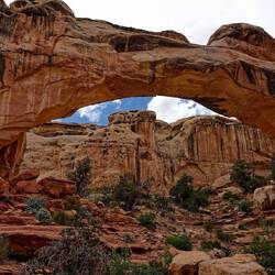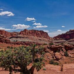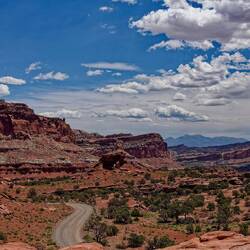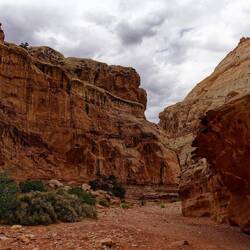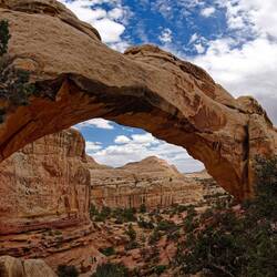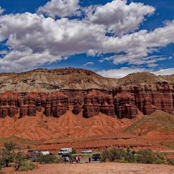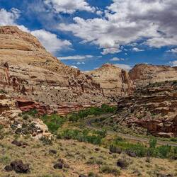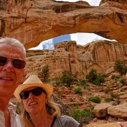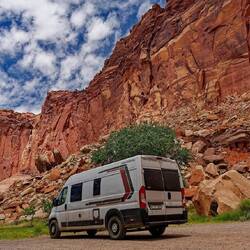 Nach einem schönen Frühstück und einem Telefonat mit den Kindern, wir haben wieder guten Empfang, geht es los. Wir fahren aus dem Grand Staircase Escalante raus Richtung Capitol Reef. Doch zunächst geht es nochmal rauf über die 3000er Grenze. Die Luft wird kühl und der Blick kann immer weiter schweifen. Nach einer sagenhaften Abfahrt ins Tal, halten wir kurz am Visitor Center des kleinen Ortes davor. Eine gelangweilte Dame erklärt uns, daß sie einzige Straße zum Capitol Reef derzeit gesperrt ist. Wegen Bauarbeiten vermutlich die nächsten drei Monate, aber dann könnten wir ja wiederkommen, dann sei die Straße ganz neu. Na super! Wir fahren bis zum Visitor Center vom Capitol Reef selber, bekommen da die gleiche Auskunft, nur diesmal von einer völlig entnervten Rangerin in einem sehr unhöflichen Ton. Das ist wirklich selten hier in Amerika. Die Ranger sind eigentlich alle sehr höflich und freundlich. Naja, das mit der geschlossenen Straße kommt eben bei keinem Touristen gut an. Wir machen eine kleine Wanderung zu einem schönen Felsbogen, der Hickman Bridge. Das Capital Reef bekommen wir wohl diesmal garnicht zu sehen. Wirklich schade. Da es sehr heiß ist, beschließen wir erst mal Siesta zu machen und zu Mittag zu essen. Zwischen riesig aufragenden gelblichen Felsriesen haben wir ein schönes Plätzchen gefunden. Am späten Nachmittag laufen wir noch in die Grand Wash Schlucht. Die Felswände ragen steil auf. Die Schlucht wird immer enger. An der engsten Stelle kann man die beiden gegenüberliegenden Felswände gleichzeitig berühren. Die Schlucht weist eine abwechslungsreiche Formation auf. Erst sind die Felswände gelblich, dann rötlich und hinterher fast schwarz. Eine tolle Wanderung da es bereits schön schattig in der Schlucht ist. Wir wandern bis zu einem Parkplatz, der eigentlich das Ende des Scenic Drives des eigentlichen Capitol Reef ist. Es ist jedoch zu spät, um ganz raus an das Reef zu wandern und so gehen wir die Schlucht zurück zum Auto. Nach wenigen Kilometern ist der Capitol Reef Park schon zu Ende und wir fahren eine Klippe hoch, auf der unser Stellplatz heute Nacht liegt. Es liegen etwa 10 Stellplätze großzügig verteilt auf dem Plateau. Nur zwei sind belegt und so haben wir die Wahl. Wir stellen uns an den Rand und genießen den Sonnenuntergang über dem Capitol Reef bei einem schönen Gläschen Wein.もっと詳しく