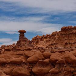 Nach einer ruhigen Nacht genießen wir das Frühstück bei einer sagenhaften Aussicht über das Capitol Reef. Weiter geht es heute zum Goblin State Park. Auf dem Weg sehen wir ein kleinesEn savoir plus