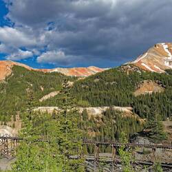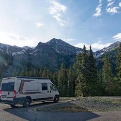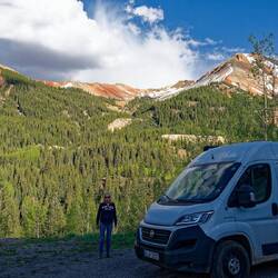 Nach einer kühlen und ruhigen Nacht, frühstücken wir mitten im Wald im Sonnenschein. Dann geht es weiter zum Million Dollar Highway. In Durango machen wir einen kurzen Zwischenstopp an einer schönen Library, welche freies WIFI anbietet. Die öffentlichen Büchereien sind hier immer top ausgestattet. Sehr schöne und moderne Architekturen, viel Platz für Menschen zum Arbeiten, mit freien PCs und Interne- Zugang, zum Entspannen und auch viele Bereiche für Kinder und Familien. So etwas müsste es auch in Deutschland geben. Bei uns sind Büchereien immer etwas altmodisch und verstaubt. Bei uns ist irgendwie die Zeit stehen geblieben. Hier in Amerika ist sind die Büchereien ein wirklich ansprechender Ort für die Allgemeinheit. Wir verlassen die schöne Library und laufen in der Parkanlage noch etwas den Bergbach entlang. Dann geht es weiter. Ein Zwischenstopp bei einem Honiggeschäft mit Schnaps- und Weinprobe. Wir nehmen einen leckeren Honig mit und Thomas einen guten Whisky. Weiter geht es den Pass rauf, über 3000 Meter. Wir halten an einem kleinen Bergsee und wandern darum herum. Sehr idyllisch. In Silverton halten wir an und gehen die Main Street hoch und runter. Eine richtige Cowboystadt, mit vielen Saloons, Geschäften und Restaurants. In einem Saloon setzen wir uns an die Bar und trinken ein lokales Bier. Hier gibt es unzählige Breweries, welche viele verschiedene Craft Biere brauen. Ich habe ein Bier, welches nach Johannisbeere schmeckt. Das ist schon sehr gewöhnungsbedürftig. Weiter geht es. Wir halten am Bachbett eines reißenden Bergbachs und essen wieder spät zu Mittag. Wir fahren in den Abend rein den Million Dollar Highway entlang. Nun kommen wir an den verlassenen Mienen vorbei, welche der Straße den Namen gegeben haben. Hier gab es Millionen Dollar in den Mienen zu schäffeln, welche primär Silber abgebaut haben. Die roten Berge werden von der untergehenden Sonne warm angestrahlt und so bleibt uns diese Straße mit unvergesslichen Aussichten in Erinnerung, Wir fahren noch bis Ouray, einem kleinen Westernstädtchen am Ende des Highways. Es liegt zwischen steilen Feldwänden tief im Tal. Heute gestaltet sich unsere Stellplatzsuche etwas schwieriger. Der Campingplatz ist voll, alle anderen Plätze haben Stellplatzverbot. Also fahren wir durch den schönen Ort und dahinter eine unbefestigte Bergstraße hoch, wo man im Forest stehen kann. Die Straße ist steil und es gibt nur wenige Stellplätze die alle besetzt sind. Wir drehen um, da die Straße zu schlecht wird und bleiben am Eingang des Forest auf einem schön waagrechten Platz stehen.Les mer