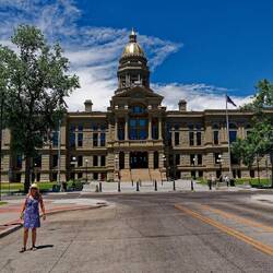 Wir wachen morgens vom Vogelgezwitscher auf und frühstücken erst mal völlig alleine in diesem wunderschönen Prärieland mit einem weiten Blick über die grasigen Hügel bis zu den Rocky am Horizont. Wir sind gerade fertig, da kommt ein älterer Mann an, welcher mit seinem Fahrrad eine Tour durch die Prärie machen will. Er spricht uns freundlich an und so kommen wir ins Gespräch. Er hält den (englischen) Guardian für die einzige verlässliche Informationsquelle. Eigentlich wohnt er in Oregon an der Küste. Er ist derzeit nur in seinem Zweitwohnsitz in Fort Collins. Wir tauschen Telefonrufnummern aus und er lädt uns zu sich nach Oregon ein. Sehr nett. Wir machen uns auf den Weg nach Cheyenne, der Hauptstadt von Wyoming. Nach einer knappen Stunde Fahrt parken wir an der Library. Wir sind mittlerweile Anhänger der amerikanischen Libraries. Wir erledigen noch ein paar Anrufe nach Hause und dann geht es zum Kapitol. Am Eingang sitzt eine nette ältere Dame, welche uns sehr persönlich begrüßt und uns einiges über das Kapitol und seinen Bau erzählt. Wir können überall reinschauen und alles anschauen. Die Türen stehen uns offen. Wir besichtigen den Senat, Repräsentantenhaus und das ehemalige oberste Gericht. Sogar beim Gouverneur können wir vorbeischauen. Bis zur Sekretärin kommen wir. Wenn wir ein Anliegen gehabt hätten, wären wir auch bestimmt weitergekommen. Das nenne ich mal eine offenes und transparentes Kapitol. Bei uns in Wiesbaden kann man das Stadtschloß, welches den hessischen Landtag beherbergt, lediglich nach Voranmeldung am ersten Samstag im Monat besichtigen und dann auch nur im Rahmen einer Führung. Das hier in Wyoming ist schon wirklich volksnahe. Weiter gehen wir und besichtigen noch das historische Haus des Gouverneurs. Bis in die 70er Jahre lebten hier die Gouverneure mit ihren Familien. Das Haus ist großzügig, aber nicht besonders stattlich. Nachdem wir noch die Kathedrale besichtigt haben, laufen wir in die Innenstadt zum Bahnhof. Alles wirkt sehr verschlafen. Die Bürgersteige sind hier schon freitags nachmittags hochgeklappt. An jeder größeren Kreuzung steht ein bemalter Cowboystiefel mindestens 2 bis 3 Meter groß. Das soll das künstlerische Wahrzeichen von Cheyenne sein. Wir gehen noch in einen Cowboyshop und probieren richtige Cowboystiefel an. Da aber weder Thomas noch mir etwas gefällt und wir die Stiefel zu Hause nur zum Fasching tragen könnten, beschließen wir, doch keine zu kaufen. Wir gehen noch einen guten Hamburger essen und dann in eine Brauerei in der wir einige Craft Biere probieren. Unter anderem auch ein wirklich scharfes Chili Bier. Das ist dann aber selbst Thomas doch zu viel, obwohl er Chilis sehr liebt, gehört das für ihn nicht ins Bier. Dann verlassen wir nun endgültig die in den Wochenendschlaf gefallene Landeshauptstadt von Wyoming. Die Stadt hat uns sehr gut gefallen, besonders das Kapitol, nur mit einer lebendigen Großstadt hat sie nichts zu tun. Wir fahren in eine schwarze dunkele Wolkenwand, welche ein heftiges Unwetter verheißt. Daher bleiben wir an einem Stausee an einem Campingplatz stehen und wir haben Glück, das Unwetter zieht an uns vorbei.Read more