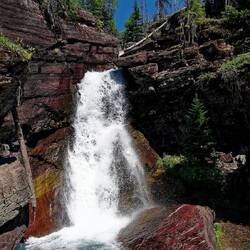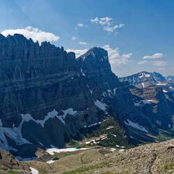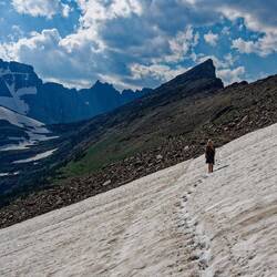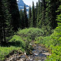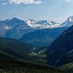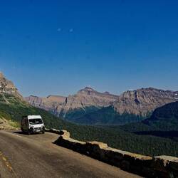 Heute geht es los auf der Hauptstraße, der sogenannten ‚Going to the Sun Road‘, durch den Glacier Nationalpark. Zunächst fahren wir den kurzen Stich von Many Gaciers zurück auf die Hauptstraße und aus dem Park heraus und bei St. Mary wieder in den Park hinein. Wir befahren die Straße von Ost nach West. Am Visitor Center am Eingang empfiehlt man uns mehrere Wanderungen. Die geplante Highline Strecke ist leider zur Zeit noch wegen der Schneefelder gesperrt. Also laufen wir heute hoch zum Piegan Pass. Auf etwa der halben Höhe der Straße zum Logan Pass parken wir unser Buschen und laufen los. Die Wanderung ist heute steiler und anstrengender als gestern. Erst geht es an einem reißenden Bergbach entlang, dann hoch durch dichten Wald bis an die Baumgrenze. Nachdem wir diese verlassen haben, eröffnet sich ein unglaublicher Blick auf die umliegenden eisbedeckten Berge. Wir wandern über Geröllfelder und Schneefelder bis zur Passhöhe. Hier ist es erheblich kühler als unten und der Wind pfeift heftig. Wir gönnen uns unsere Kekse und das mitgebrachte Wasser und machen uns wieder auf den Rückweg, die Bergblicke und vereisten Berggipfel immer vor Augen. Als wir wieder in den Wald eintauchen, haben wir eine kurze Begegnung mit einem etwa fuchsgroßen Tier, welches uns auf dem kleinen Bergpfad entgegenkommt. Es hat scheinbar keine Angst und so klettern wir auf einen danebenliegenden Felsen, damit dieses Tierchen passieren kann. Das hat es jedoch irgendwie erschreckt und der kleine Kerl kehrt doch wieder um und läuft ins Gebüsch und davon. Was war das für ein Tier. Wir haben einige Photos gemacht, die wir nachfolgenden Wanderern zeigen. Diese meinen das sei ein Vielfraß gewesen, welcher sehr selten sei. Am Buschen zurück fahren wir hoch zum Logan Pass. Die Straße führt weiter hoch direkt ins Eis. Wildes Wasser stürzt die Felswände entlang der Straße herab. Ein Blick ist schöner als der andere. Oben am Pass angekommen zeigen wir die Photos von dem Tier den beiden Rangern im Visitor Center. Die junge Frau meint, dies sei ein Marder und der ältere Ranger ist sich ziemlich sicher, dass dies ein kleiner Braunbär sei. Na gut, das uns da die große Mutter nicht erwischt hat. Wir laufen noch Richtung Schneefelder des Hidden Lakes und machen uns dann aber auf den Runterweg Richtung Westen zum Avalanche Campground. Doch die Straße zieht uns auch runter in ihren Bann und wir halten am Straßenrand an um bei dieser atemberaubenden Aussicht zu Abend zu essen. In unserem Buschen haben wir ja immer alles dabei. Kurz vor dem Dunkelwerden kommen wir am Campingplatz an und schlafen auch schon bald müde ein.Læs mere