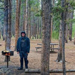 Heute ist das Geyser-Basin rund um den Old Faithful angesagt. Wir fahren los und kommen pünktlich zum nächsten Ausbruch am Old Faithful an. Der ist besonders zuverlässig (daher der Name) alle 90 Minuten dabei. Es sind schon viele Zuschauer versammelt, aber es gibt trotzdem noch genug Platz für uns. Und tatsächlich, sogar vier Minuten vor der Zeit, schießt die Fontäne hoch. So kamen wir hier auch vor 17 Jahren an, allerdings ist heute sehr viel schöneres Wetter und sogar strahlend blauer Himmel im Hintergrund. Nach dem Ausbruch gehen wir weiter, es ist ja ein recht großes Gelände mit ganz vielen Geysieren, ständig brodelt uns zischt es irgendwo. Nicht alle so groß wie der Old Faithful, aber auch sehr interessant. Pünktlich zum nächsten Ausbruch des Old Faithful sind wir in einem Waldstück oberhalb, so daß wir den Ausbruch aus der Vogelperspektive sehen können, auch sehr schön anzusehen. Weiter geht es durch das Tal, das Wetter bleibt uns gut gewogen. Am Riverside Geyser warten wir, der sollte jeden Moment ausbrechen und dann ganz hoch sprühen, aber er kommt und kommt nicht. Halt eben nicht so „faithful“ wie sein Kollege! Irgendwann reicht es uns und wir gehen weiter, es gibt hier so viele zu sehen. Wir gönnen uns noch ein Eis in der Lodge vor dem Parkplatz und dann geht es weiter zum mittleren Geyser-Basin. Da sind weniger Geysire, sondern mehr „Hot Poles“, in denen das Wasser vor sich hin kocht, meist mit intensivem Schwefelgeruch und in Löchern und Kavernen, die schöne schweflig-gelbe Ränder haben. Das ist für die Nase eher unangenehm, aber das Auge freut sich – ebenso die Kamera, auf den Bildern kommt der Gestank ja auch nicht mit. Am Abend suchen wir uns noch eine Picknick-Area, heute wollen wir grillen. Wir haben Maiskolben und Steaks besorgt und auch genügend Grillholz dabei. Wir finden einen schönen Picknickplatz und da es schon etwas später ist und auch das Wetter sich eingetrübt hat, sind wir hier alleine. Wir halten an dem einzigen Platz, der einen Grill hat und legen los. Ein paar vereinzelte Regentropfen gibt es zwar, aber die können uns die gute Laune nicht vermiesen. Nach einem vorzüglichen Abendessen fahren wir weiter, heute gab es keinen Platz mehr im Park, da müssen wir einen Campground außerhalb ansteuern. Wir fahren nach Norden, bei Gardiner sollte es Platz geben. Die Strecke ist sehr eindrucksvoll, eine tolle Gebirgslandschaft. Es kommen uns sehr viele Autos entgegen, dabei wird es schon dunkel – wo wollen die denn alle noch hin? Wir fahren durch Gardiner hindurch zu einem der Campgrounds auf unserer Liste. Es ist schon ziemlich voll, aber am Ende finden wir dann doch noch einen Platz für die Nacht.Read more