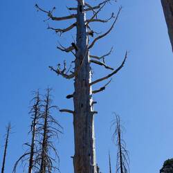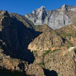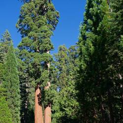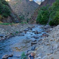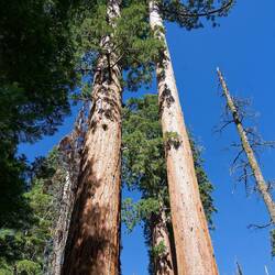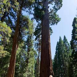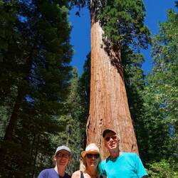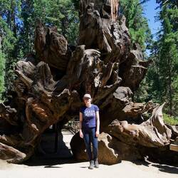 Weiter geht es zum Kings Canyon und Sequoia Nationalpark. Nach etwa 3 Stunden fahrt stehen wir am Eingang und besuchen zunächst das Visitor Center. Wir beschließen für die erste Nacht einen Campingplatz im Kings Canyon zu buchen und in der zweiten Nacht einen freien Stellplatz zwischen den beiden Parkteilen zu suchen. Dann besuchen wir den nahe gelegenen General Grant Tree. Er ist der zweitgrößte lebende Baum der Erde und wirklich eindrucksvoll. Wir wandern noch etwas durch den weitläufigen Park mit vielen hohen Sequoia Bäumen und fahren dann weiter in den Kings Canyon. Der Weg ist eine eindrucksvolle Panoramastraße. Wir fahren über einen hohen Pass hinab in den Canyon. Von der Passhöhe haben wir einen gigantischen Blick über die Berglandschaft. Der Weg runter führt im unteren Bereich an einem Bach entlang. Kurz vor dem Dunkelwerden erreichen wir den Campingplatz. Rebekka beschließt im Zelt zu schlafen und baut es auf, wir grillen und genießen den Abend. Doch dann ertönt lautes Hupen und Geschrei. Was ist das? Hat jemand Geburtstag? Aber nein, das Hupen kommt näher und wir hören die Leute „Bär“ schreien. Wir nehmen das nicht ernst, aber keine zwei Minuten später trottet ein Schwarzbär etwa 10 Meter von unserem Feuer entfernt vorbei. Wir bekommen einen Riesenschreck, rennen schnell in das Buschen und machen die Schiebetür zu. Ich schiebe mich aus dem Dachfenster über dem Bett raus und beobachte den Bären, der gemächlich weiter trottet. Was ein Schreck am Abend und Rebekka beschließt, heute doch nicht im Zelt zu nächtigen. Wir kehren ans Feuer zurück und unterhalten uns noch kurz mit unseren deutschen Stellplatznachbarn, deren drei kleine Kinder ganz aufgeregt sind. Wir laufen noch ein zweites Mal ins Buschen, da der Bär es so schön auf dem Campingplatz findet und sich weiter herumtreibt. Dann beschließen wir, den Abend zu beenden und gehen ins Bett. Wir werden noch zweimal in der Nacht von lautem Hupen und Schreien aufgeweckt. Der Bär ist wirklich hartnäckig.もっと詳しく