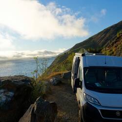 Nach einem schönen Frühstück auf der Terrasse über dem Weinberg, wollen wir der Gastgeberin zu ihrem 60. Geburtstag gratulieren. Wir treffen ihren Mann und die ganzen Helfer an. Sie holen Clare herbei und wir gratulieren ihr und singen ihr auf Deutsch ein Geburtstagslied. Der Man ist so begeistert, dass wir das ganze nochmal für ein Video wiederholen. Clare freut sich total. Wir verabschieden uns und wollen unsere Rechnung für den Wein und die Übernachtung begleichen. Ihr Mann meint jedoch, heute würde Clares Geburtstag gefeiert und so seien wir Ihre Gäste. Wir wären auch zu der Party heute Abend eingeladen. Wir sind ganz gerührt von der herzlichen Gastfreundschaft und bedanken uns. Da wir heute jedoch noch ans Meer wollen, können wir nicht an der Party heute Abend teilnehmen. Dennoch wird die Gastfreundschaft dieses Winzerehepaar, ihr super guter Rotwein und die Nacht im Weinberg für immer einen besonderen Platz in unseren Reiseerlebnissen haben. Wir schauen uns noch Paso Robles an, einen hübschen kleinen Ort mit schönen Parkanlagen, netten Geschäften und schnuckeligen Restaurants. Nach einem leckeren Eis fahren wir runter an den Pazifik. Es ist ein schöner sonniger Nachmittag und so wandern wir am Sandstrand entlang und genießen die Brise, das Meer und den feinen Sandstrand. Wir fahren weiter, denn wir wollen noch Hearst Castle besichtigen. Es hat bis 17 Uhr auf. Wir kommen kurz vor 16 Uhr an und werden schon nicht mehr reingelassen. Der letzte Touristenbus ist vor 10 Minuten um 15:30 abgefahren. Wir müssen die Besichtigung auf morgen verschieben. Weiter geht die Fahrt nach Norden, das letzte Stück bis zu der Erdrutsch Absperrung die uns von Süden kommend schon den Highway 1 versperrt hat. Wir stoppen noch und beobachten eine Herde See-Elefanten, welche sich am Strand sonnen. Diese Tiere sehen durch ihre überlange Nase wirklich ulkig aus. Eben wie ein Seehund mit Rüssel und etwa doppelt so dick. Sehr interessant. Kurz vor der Erdrutsch Absperrung gehen wir schön in einem kleinen Restaurant essen. Auf der Terrasse haben wir Sicht auf das Meer und können die untergehende Sonne genießen. Kurz hinter dem Restaurant finden wir einen schönen Stellplatz für die Nacht mit atemberaubender Aussicht über das Meer und Big Sur.Read more
