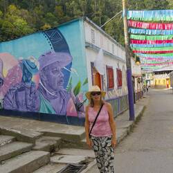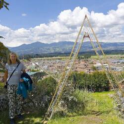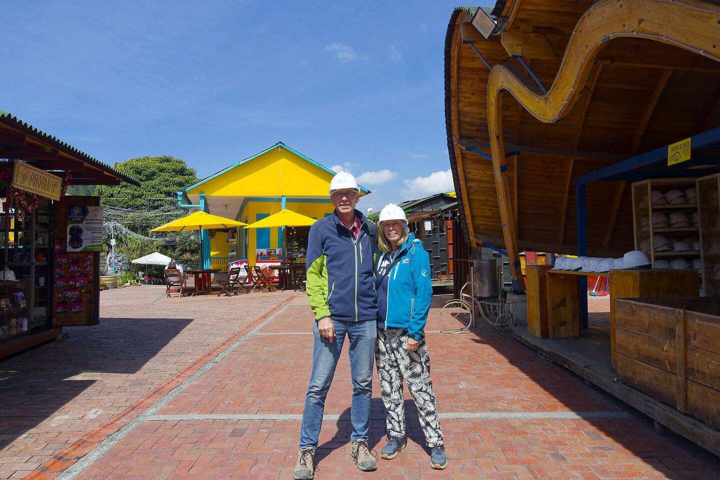Nach einem gemütlichen Frühstück mit wunderschöner Kulisse geht es weiter. Wir verabschieden uns von dem französischen Backpacker Päarchen, mit dem wir uns gestern bis spät in die Nacht unterhalten haben. Sie sind auf Weltreise und haben sich eine einjährige Auszeit genommen. Das ging zu unserer Zeit nicht so einfach. Wir fahren also los und bleiben nach gut zwei Kilometern an der Baustelle stecken. Bei der Hinfahrt ging es bergab und es war trocken. Heute Nacht hat es heftig geregnet. Das Stück befahrbarer Straße ist völlig aufgeweicht und hat riesige, tiefe und matschige Spurrillen. Thomas nimmt Anlauf, aber die Strassenarbeiter wedeln heftig und so stoppt er und fährt rückwärts zurück. Sie bräuchten noch etwa drei Stunden um die Straße soweit für 2x2 befahrbar zu machen. Thomas muss also rückwärts bis zu einer Hofeinfahrt, wo er dreht. Wir finden eine Stelle in der Nähe wo Gestein für den Straßenbau abgeladen wurde. Hinter diesem Hügel parken wir am Straßenrand. Was sollen wir tun. Wir laufen zurück und schauen den Straßenarbeitern zu. Acht Männer bemühen sich nach allen Kräften, mit lediglich zwei Schubkarren und Schaufeln. Es geht vorran. Die tiefen Spurrillen werden zugeschüttet. Es stoppt ein Österreicher mit seiner kleinen Tochter und einem normalen Auto. Auch er kommt nicht durch. Wir unterhalten uns kurz. Er ist wegen der aus seiner Sicht chaotischen Zustände in Österreich mit seiner Frau und seinem Kind nach Kolumbien ausgewandert. Hier hat er eine Farm gekauft und will jetzt Austernpilze züchten und seine Tochter selber unterrichten. Hier gibt es wirklich schräge Vögel. Ihm wird das Warten zu lange und er kehrt mit seiner Tochter auf seine Farm zurück. Wir warten. Nach etwa drei Stunden erklären die Bauarbeiter die Straße für befahrbar. Thomas überredet sie, noch einen Holzpfahl zu entfernen, welcher die Fahrbahn am Hang sehr eingeengt hat. Ohne Pfahl braucht er nicht so präzise zu lenken, was bei der steilen und schwer befahrbaren Strecke nicht so möglich ist. Wir holen das Buschen. Thomas nimmt Anlauf um hochzukommen. Auf halber Strecke bleibt er stehen. Er versucht wieder anzufahren. Alle Bauarbeiter versuchen anzuschieben. Aber das klappt nicht. Das Buschen schlingert und schlägt mit dem Heck weit aus. Also nochmal zurück. Ohne Hilfe kommen wir nicht rauf. Thomas versucht es nochmal. Er kommt zwar weiter hoch, bleibt aber auf ungefähr zwei Drittel der Strecke stecken. Schnell legen wir dicke Steine hiner die Hinterräder, damit der Bus nicht mehr nach hinten rutscht. Wir brauchen aber jemanden, der uns das letzte Drittel hochzieht. Da kommt einer von den Jeeps, welche Personen und Lasten transportieren. Er erklärt sich bereit zu ziehen. Wir holen unser bewährtes Abschleppseil raus und dann geht es ruck zuck und wir sind oben. Was ein Glück. Das war mal wieder ein echt nervenstrapazierende Situation und für das Buschen materialverschleißend. Die Straßen in Kolumbien sind wirklich super schlecht (außer den Autobahnen, die sind sehr gut). Wir fahren eine kurze Strecke bis Salento und sind nach etwa einer Stunde da. Wir nehmen uns einen gut zugänglichen Parkplatz und besichtigen die kleine Stadt. Sie ist schön für den Tourismus rausgeputzt. Ein schicker Park in der Mitte, eine schöne Kirche und eine "Drosselgasse", wo sich ein Geschäft an das andere reiht. Wir laufen noch hoch auf einen Aussichtpunkt. Leider haben sich die Wolken so zusammengezogen, dass wir nicht in das Valle de Coco schauen können. Dafür gibt es eine schöne Aussicht über Salento. Wir gehen noch essen und nehmen dann noch einen Kaffee zum Abschluß. Dann beschließen wir, noch die kurzen 12 Kilometer in das Valle de Coco zu fahren. Das war eine gute Entscheidung. Wir finden einen Stellplatz mit Aussicht über das ganze Tal und eine hoch aufragende Palme direkt vor uns. Wir machen noch einen kurzen Abendspaziergang bis zum Parkeingang und gehen wieder in unser warmes Buschen. Es wird empfindlich kalt und so sind wir froh, im Warmen zu sitzen.Read more