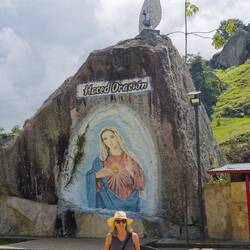 Heute morgen nehmen wir uns einen Uber zu der Wohnung von den Schwiegereltern meines Neffen Felix. Seine Frau stammt aus Bogota und ist hier aufgewachsen. Heute sind wir zu einer Taufe eingeladen. Felix und Sofia sind Taufpaten bei ihrer kleinen Nichte Alana, welche wir letztes Jahr auf ihrer Hochzeit kennengelernt haben. Sie wohnen in einem riesigen Gebäudekomplex in einer Gated Community. Wir lassen uns absetzen und gehen uns beim Pförtner anmelden. Dann kommen schon Felix uns Sofia runter und begrüßen uns. Wir fahren in den 11. Stock. Geraldine begrüßt und freundlich in der weihnachtlich geschmückten Wohnung. Sie gibt uns sogar ihr Ehebett als Gästebett. Wir sind sehr gerührt über so viel Gastfreundschaft. Doch dann brechen wir auf zur Taufe, bzw. erst mal zu der Kirche, wo diese stattfinden soll. Wir sind wie immer spät, aber der Täufling selber ist auch noch nicht da und so sind wir für kolumbianische Verhältnisse früh. Es kommen etwa 70 Personen zur Taufe. Der Gottesdienst wird von einem alten Pfarrer extra dafür abgehalten. Nach der Taufe geht es wieder etwa eine halbe Stunde mit dem Auto quer durch die Stadt bis zu einem Kulturzentrum in dem die Feier stattfindet. Es ist schon ein Tisch mit einer großen Tauftorte aufgebaut. Ein Caterer ist auch da, aber es wird erst mal gekocht. Die Kinder der Gesellschaft bekommen eine Hüpfburg aufgeblasen und zwei nette Frauen, welche sich um die Bespaßung kümmern. Wir lernen, dass in Kolumbien jeder Kindergeburtstag von professionellen Betreuern bestritten wird. So was könnten wir uns in Deutschland nicht leisten. Der Täufling wird herumgereicht und jeder bekommt das kleine und liebe Mädchen mal in die Hand gedrückt. Wir freuen uns auch nach so langer Zeit mal wieder ein kleines Kind im Arm zu haben. Dann gibt es Hotdogs für die Kinder und noch etwas später auch das Essen für die Erwachsenen. Dann gehen wir noch etwas um den Block spazieren und verpassen die Rede der Täuflings-Eltern. Dafür bekommen wir aber ein Stück super süße Torte. Sie schmeckt sehr nach Amerika. Diese Torte hätten wir auch in den USA serviert bekommen. Am späten Nachmittag löst sich die Feier auf und wir fahren mit Sofia, Felix und Geraldine noch zum Monserrate. Eine ganze Stunde stellen wir uns an der Zahnradbahn an. Als wir oben auf dem Berg ankommen, ist es schon dunkel. Überall strahlt die bunte und farbenfrohe kolumbianische Weihnachtsbeleuchtung. Wir wandern zur Kirche und wir frieren. Wir sind über 3.000 Meter hoch und der Wind ist eisig. So frieren wir so nahe am Äquator. Es soll noch einen speziellen Weihnachtsgesang geben, aber Thomas und mir ist es zu kalt und so fahren wir zurück. Es war ein wirklich schöner und ereignisreicher Tag.Read more