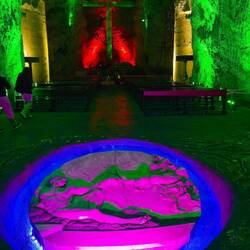 Die Nacht war erstaunlich ruhig. Kein Hundegebell, keine Motorgeräusche, keine Hahnenschreie früh morgens. Einfach ruhig und das mitten in der Stadt. Wir laufen den Berg zum Eingang der Salzkathedrale hoch. Um Punkt 9 Uhr öffnet der Ticketschalter und so kommen wir als einer der Ersten in die Kathedrale. Zunächst laufen wir den Kreuzweg entlang. Hier wurden die einzelenen Kreuzwegstationen in den Salzstein gemeißelt und wunderschön but beleuchtet. Dann kommen wir in die Kathedrale selber. Sie ist eine riesige Halle mit einem schwebenden vielfarbig beleuchteten Kreuz über dem Altar. Es ist eine ganz besondere Atmosphäre, welche wir genießen können da noch nicht viele Besucher da sind. Auch die Seitenschiffe sind beeindruckend. Das ist wirklich einzigartig. Wir geben am Ausgang unseren Audioguide zurück und schlendern noch etwas durch das Örtchen. Von dort fahren wir weiter nach Nemocon, welches nur knapp 30 Kilometer entfernt liegt. Hier gibt es ein weiteres Salzbergwerk zu besichtigen. Noch ürsprünglich und nicht zu eine Kathedrale umgeformt. Der Weg gestaltet sich zum Schluß etwas holprig und voller Schlaglöcher. Im Ort tanken wir noch zwei Garafonen Trinkwasser. Man kann angeblich auf dem Parkplatz des Salzbergwerks stehen. Es stellt sich jedoch heraus, dass dies nur ein kleiner seitlicher Waldweg ist und völlig schief. Wir finden einen Bezahlparkplatz. Der alte Mann gibt uns sogar einen Schlüssel mit dem wir nachts das Haupttor verschliessen können. Wir laufen durch das schnuckelige Örtchen. Danach kochen wir uns ein Mangocurry, da die Mangos gegessen werden müssen. Abends bewundern wir die ausladenende Weihnachtsbeleuchtung. Ein Mann empfiehlt uns, auch noch zum Salzbergwerk zu gehen. Das sei auch schön beleuchtet. Wir laufen dorthin und finden ein langen Lichtertunnel vor, welcher hoch auf den dahinterliegenden Hügel führt. Auf dem Hügel ist eine ganze Wiese mit weißem Fliess ausgelegt, welches in der Beleuchtung wie Schnee wirkt und viele weihnachtliche Figuren und Tannenbäume. Sehr eindrucksvoll. Die Weihnachtsbeleuchtungen sind hier wesentlich extensiver als bei uns zu Hause.Read more