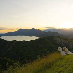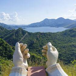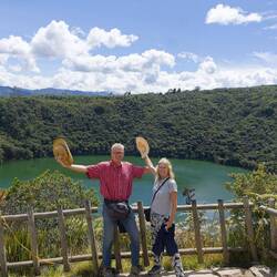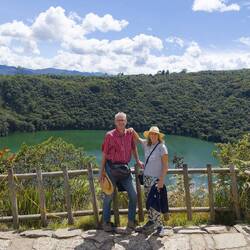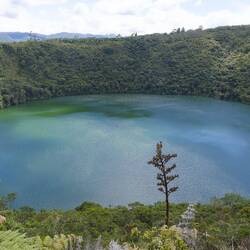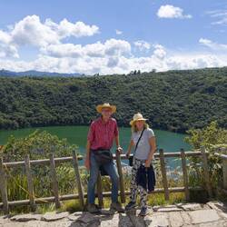Die Nacht war kühl und ruhig. Morgens überlegen wir, uns ob wir einen Uber zu der Lagune bestellen. Da jedoch keiner im Angebot ist und auch Camillo sagt, die Straße sei gut zu befahren, nehmen wir das Buschen. Erst verpassen wir den Abzweig, den Google uns anzeigt. Wir fahren zurück, biegen ab und fahren eine kleine unbefestigte Straße entlang. Zunächst an Häusern vorbei und dann an Wiesen mit weidendem Vieh. Wie in Österreich, nur die Straße ist eher ein Wanderweg. Teilweise haben wir super steile Anstiege auf unbefestigtem Geröll. Thomas gibt echt Gas, aber es ist grenzwertig. An dem Gasthof am Ausgang des Wanderweges zur Lagune gibt es einen großen Parkplatz. Wir stellen das Buschen ab und sind froh, nicht mehr weiter fahren zu müssen. Der Busfahrer des Kleinbusses meint, er würde in etwa 40 Minuten zum Eingang fahren. Wir können gerne mitfahren. Wir trinken noch einen Kaffee und beschließen dann doch zu laufen. Die Straße ist ziemlich schlecht, aber zum Wandern gut. Nach knapp einer Stunde sind wir am Eingang. Wir kaufen ein Ticket. Man kommt nur in geführten Gruppen an die Lagune und im Moment gibt es nur spanischsprachige Führungen von den Rangern. Das ist Pech. Wir gehen rein und da ist eine Gruppe mit einer lustigen Führerin, welche fließend Englisch spricht. Sie lädt uns freundlich ein, in der Gruppe mitzugehen. Das nehmen wir dankbar an. So bekommen wir einige Hintergrundgeschichten zur El Dorado Lagune mit. Die Lagune wurde von den Indianern als der Bauch ihrer Göttin Pacha Mama verehrt. Daher wurden viele goldene Figuren als Opfergaben in den Se geworfen. Als die Spanier auf der Suche nach dem legendären Indianergold an den See kamen, fanden sie tatsächlich viele goldene Figuren und dachten das sagenhafte El Dorado gefunden zu haben. Nun war die Frage, wie man an das viele Gold auf dem Grund des Sees kommen sollte. Man kam irgendwann auf die Idee, einen Teil der Seitenwand des Vulkansees zu sprengen und so den See auszutrocknen. Da man allerdings nicht wusste wie tief der See war, floss nur ein Teil des Wassers ab. An dem freigelegten Ufer fand man viele goldene Figuren, aber ganz konnte man den See nicht austrocknen. Daher liegt es bis heute in dem Bereich der Legenden, ob hier wirklich das sagenhafte Gold der Indianer liegt. Unser Weg hoch an den Kraterrand des Sees ist sehr steil und anstrengend. Die Führerin ist unterhaltsam und nett. Oben angekommen, bietet sich ein grandioser Blick auf die grün bis türkis schimmernde Lagune. Je nach Sonneneinstrahlung wechselt sie ihre Farbe. Wir laufen im Halbrund darum herum. Leider sind viele Touristengruppen unterwegs und so ist dieses wunderschöne Naturerlebnis sehr überlaufen. Wir sind mehr als 3.000 Meter hoch und haben einen genialen Blick auf das Umland. Wir lassen die Gruppen vorbeiziehen, bedanken uns bei der Führerin und genießen zum Schluss noch einige ruhige Minuten. Dann laufen wir zu unserem Buschen. Der Wirt des Restaurants verkauft Thomas einen teuren geräucherten Schweinebauch und die Information, den unbefestigten Weg noch einige hundert Meter entlang zu fahren und dann nach links auf eine geteerte Straße abzubiegen, welche an den aufgestauten See von Guatape führt. Das sei sehr viel komfortabler als der ungeteerte Schüttelweg, den uns der Google hochgeschickt hat. Sollen wir das glauben? Ich laufe den weg nochmal sicherheitshalber ein paar Meter ab. Ja, den ungeteerten Teil können wir schaffen. Thomas beschließt, dem Wirt zu glauben. Das war eine gute Entscheidung. Nach ein paar hundert Metern unbefestigten Weges entpuppt sich die Straße als tatsächlich voll geteert. Zu Anfang neu und glatt wie ein Kinderpopo, dann etwas älter mit Schlaglöchern und aufgerissenen Stücken. Aber kein Vergleich zu der unbefestigten Straße die wir gefahren sind. Diese Straße ist wirklich einfach. Es ist unglaublich, welchen Mist einen Google schickt und wenn man die Gegend nicht kennt, weiß man es nicht anders. So fahren wir recht entspannt zurück, gehen in den Ort superlecker Forelle essen und lassen den Abend gemütlich ausklingen.Read more