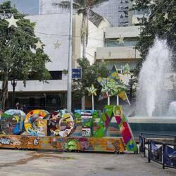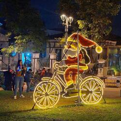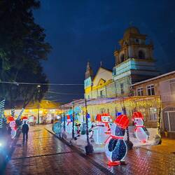 Heute müssen wir unser Buschen um parken. Mit gemischten Gefühlen bestellen wir uns einen Uber raus nach Cota. Nach etwa anderthalb Stunden stehen wir am Parkplatz und fahren das Buschen zum neuen Campingplatz. Der ist am Stadtrand gelegen. Juan begrüßt uns und wir stellen uns als erster Kunde in die Ecke des nicht allzu großen Platzes. Hier haben etwa drei bis vier Fahrzeuge Platz. Der Platz ist gut, hier kann das Buschen gut stehen, solange wir in Deutschland sind.. Wir machen unser Buschen fertig für die drei Wochen, in denen es hier steht und packen das Gepäck für den Flug nach Hause. Alles klappt gut und so sind wir nach zwei Stunden wieder auf den Rückweg mit dem Uber zu Sofia. Im Apartment angekommen, stellen wir nur kurz unsere Sachen ab und fahren dann mit der Tante, den beiden Kindern, der Uroma mit 95 Jahren, der Oma, Geraldine, Sofia und Felix zu Essen nach Usaquen. Das ist der Stadtteil, in dem Sofia zur Schule gegangen ist, der eine quicklebendige Restaurant-Szene hat und aktuell auch einen Weihnachtsmarkt in der Fußgängerzone. Wir stehen etwa eine Stunde an bis wir ins Restaurant kommen. Alles kein Problem für uralte Damen und kleine Kinder. Das Essen ist dann aber gut. Wir schlendern über den Weihnachtsmarkt und lassen uns von den vielen bunten kolumbianischen Weihnachtslichtern verzaubern und von dem Weihnachtsmann auf dem Fahrrad.Read more