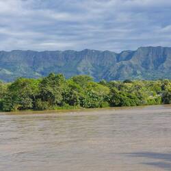 Eine weitere Nacht im Paradies. Heute haben wir Zeit ausgiebig zu frühstücken. Unser Blick schweift über den Horizont und bleibt an einem schneebedeckten Berggipfel hängen. Schneebedeckte Berge mitten in den Tropen. Wir versuchen herauszufinden um welchen Berg es sich handelt und finden heraus dass es der höchste Berg Kolumbiens ist. Ein aktiver Vulkan mit Gletscherkappe und 5364m Höhe. Sein Name ist Nevado de Huila. Phantastisch, man sieht ihn nur selten. Und nach einer Stunde ist das Schauspiel vorbei und dichte Wolken verhängen den höchsten Vulkan der Nordhalbkugel. Da hatten wir echt Glück. So beschwingt, fahren wir zu Edwin und verabschieden uns von ihm und seiner Mutter. Wir laden ihn zu uns nach Hause und nach Spanien ein. Dann fahren wir weiter nach Neiva und kaufen in einem riesigen Supermarkt ein. So gut bestückt geht es weiter Richtung San Augustin. Am Rio Magdalena machen wir eine Stop und essen einen leckeren frittierten Flussfisch. Etwas weiter finden wir einen Stellplatz hoch über dem Stausee und den Rio Magdalena mit grandioser Sicht. Es ist eigentlich ein Selfieplatz, aber wir bleiben hier über Nacht stehen.Read more