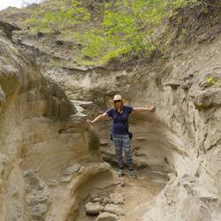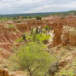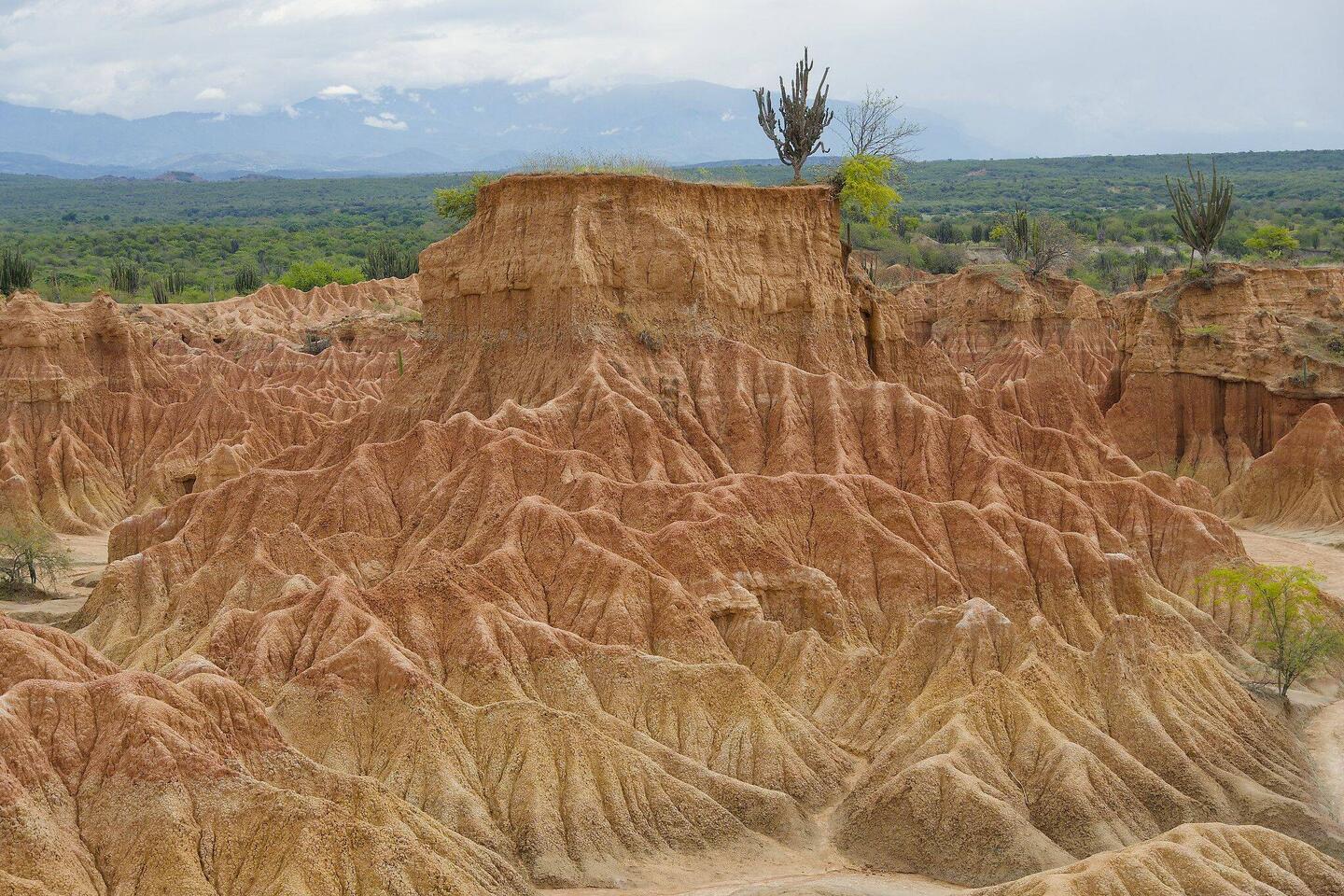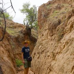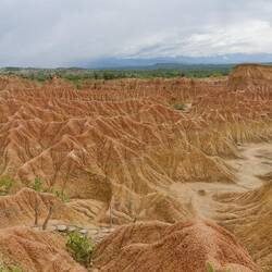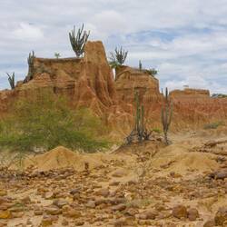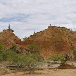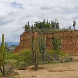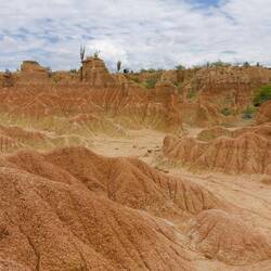 Wir haben phantastisch ruhig geschlafen mit einer schönen Brise. Nach einem gemütlichen Frühstück vor der Kulisse der roten Wüstenformationen, fahren wir weiter zur grauen Wüste. Diese schließt sich übergangslos an die rote Wüste an. Der Unterschied ist die graue Farbe der Felsformationen. Hier erinnern sie an die amerikanischen Bitsi Badlands. Wir fahren bis an das Ende der Straße und machen eine Wanderung runter in einen Canyon, welcher teilweise ein richtig schmaler Slotcanyon ist. Teilweise ist es noch schlammig von dem Regen von vor zwei Tagen. Dann verlassen wir den Canyon und laufen über eine Hochebene mit weiten B4lick durch das karstige Tal mit den Felsformationen. Zwischendurch gibt es riesige Kakteen. Es ist phantastisch und einsam. Wir genießen das Wüstenfeeling. Dann geht es wieder runter in das ausgetrocknete Flußbett. Teilweise ist es noch so matschig, dass wir uns an den Felswänden entlangschlängeln. Wegen des Wassers gibt es auch Ziegen und Kühe im Flußbett. Wieder oben angekommen ist es die Mittagshitze so auf ihren Höhepunkt. Wir setzen uns in den Schatten einer Restaurant Veranda und genießen ein kühles Bier. Danach bestellen wir noch Essen und beschließen, uns ein schönes Plätzchen für die Nacht zu suchen. Wir werden nach wenigen hundert Metern fündig. Der Platz ist ideal. Direkt am Sträßchen, schön flach und mit super Blick über die weite Ebene. Wir genießen den Sonnenuntergang und hinterher das wunderschön wolkenfreie Himmelszelt. Der Platz ist einzigartig und wir verlieren uns Herz daran. Das ist unsere Nummer eins hier in Kolumbien.Read more