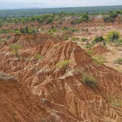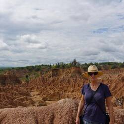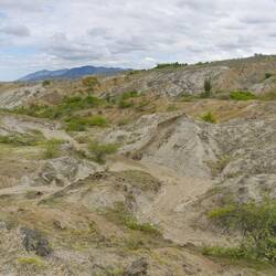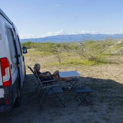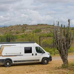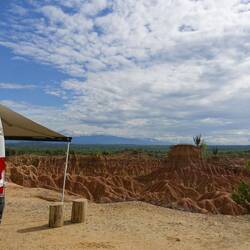 Wir haben gut geschlafen und frühstücken wie gewohnt unser Müsli. Edwin steht spät auf und so verabschieden wir uns von ihm. Die nächsten beiden Nächste wollen wir in der Tatacoa verbringen. Wir fahren aus Villavieja raus und sind nach etwa 10 Kilometern an der roten Wüste angekommen. Der erste Aussichtsplatz lässt uns über die bizarren Steingebilde und Auswaschungen des Red Dessert schauen. Das sieht super aus. Sehr den Badlands von Dakota ähnlich. Wir parken unser Buschen an der astrologischen Sternwarte, nehmen uns jeder einen Liter Wasser mit und machen uns auf. Zunächst geht es steil bergab, bis wir mitten im bizarren und roten Steinwunderland stehen. Wir verlaufen uns auch prompt und Thomas will an einem Schlammloch vorbei und tritt mitten rein. Er versinkt tief bis zum Schienbein. Ich glaube, den Weg nehme ich nicht. Ich klettere über ein paar Felsen und habe so das Schlammloch umgangen. Thomas versucht mühsam, mit trockenen Sand die Füße und Schuhe zu säubern. Richtiges Wasser gibt es hier nicht. Dann laufen wir weiter rein. Wir verlaufen uns noch ein paar mal. Die Leute die wir treffen haben auch keine bessere Orientierung. Irgendwann finden wir zurück auf den Weg und laufen immer entlang der Holzpfähle welche als Wegmarkierung gemacht wurden. Nach schweißtreibenden drei Stunden sind wir wieder oben am Rand der Badlands. In einer kleinen Bar gönnen wir uns ein Bierchen, welches echt zischt. Zurück am Buschen spricht uns ein junger Mann aus Heidelberg an, welcher sich ein Auto ausgeliehen hat und drei Monate in Kolumbien unterwegs ist. Ihm fällt auf, dass unsere neuen Reifen von 2023 sind. Also nicht neu! Wir hatten bei Juan allerdings neue Reifen bestellt und er hat keinen Ton gesagt. Das ist schon echt eine Frechheit. Uns wäre wahrscheinlich sowieso nichts anderes übrig geblieben als die Reifen zu nehmen. Aber ehrlicherweise hätte ich schon erwartet, dass er es uns gesagt hätte. Er nennt sich Automechaniker und kann ganz bestimmt die Stempel an den Reifen interpretieren, so wie der junge Mann. Aber uns einfach für dumm zu verkaufen, weil wir das nicht wissen ist schon nicht so fair. Genau das werden wir jetzt auch in unseren Kommentar schreiben. Wir wollen heute Nacht noch zur astronomischen Sternwarte und fahren erst mal dorthin. Der Campingplatz daneben gefällt und nicht so und so lassen wir uns am Campingplatz direkt am Rand der roten Wüste nieder. Ein wirklich unübertrefflicher Blick. Wir drehen die Markise raus und kochen. Dann lassen wir es uns schmecken, genießen die Aussicht und unterhalten uns mit den verschiedenen Leuten die vorbeikommen. Am lustigsten sind zwei kleine kolumbianische Jungen. Ihnen gefällt unser Haus auf Rädern besonders. Kurz vor dem Dunkelwerden machen wir uns zu Fuß auf zur Sternwarte. Nach etwa 30 Minuten sind wir da. Der Professor hat aufgrund der Wolken das Programm umgestellt. Zunächst können wir durch das Teleskop den Saturn mit Ring, den Jupiter mit seinen Monden und die Plejaden durch die Teleskope betrachten. Sie sind fantastisch scharf. Wir sind absolut begeistert. Dann gibt es einen Vortrag über die Sterne auf spanisch. Wir liegen im Gras auf den Rücken und da schlafe ich doch fast ein. Ich kann den Vortrag leider nicht folgen, da mein Spanisch nicht gut genug ist. Thomas meint aber, es sei wirklich gut gewesen und fast so das Wesentliche für mich zusammen. Dann laufen wir im Dunklen mit der Taschenlampe zurück zum Buschen.Read more