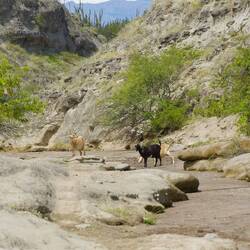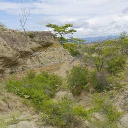 Heute geht es weiter Richtung Tatacoa. Es ist etwas zu weit für einen Tag und so planen wir, heute Abend in dem kleinen Töpferdörfchen La Chamba am Rio Magdalena zwischenzuübernachten. Wir verabschieden uns herzlich von Juan, der alles wunderbar organisiert hat. Dann gibt es noch einen ausgiebigen Morgenplausch mit den kalifornischen Nachbarn. Wir werden uns im Verlauf unserer Reise bestimmt wiedertreffen. In einer Wasserfilterfabrik halten wir an und betanken das Buschen mit frischen Trinkwasser. Dann parken wir am Strassenrand mitten in Cota und kaufen Pflaster für Thomas in der Apotheke, Grundnahrungsmittel und Trinkwasser. So frisch ausgestattet geht es los. Der Verkehr rund um Bogota ist dicht. Gut, dass wir nicht in die Stadt müssen. Nachdem wir Bogota hinter uns gelassen haben wird der Verkehr deutlich ruhiger. Die Landschaft ist bergig und die große Bezahlstrasse in einem super Zustand. Wie eine deutsche Autobahn. Die Landschaft verändert sich. Wir kommen tiefer nach unten. Die Temperaturen steigen und die Vegitation wird tropisch. Wir fahren durch wunderschöne Berglandschaften und Täler. Obwohl wir die Strecke schonmal gefahren sind, sieht es in die andere Richtung ganz anders aus. Unten in der Flußebene des Rio Magdalena ist es brütend heiß und sehr feucht. Wir verlassen den Highway und fahren durch das kleine recht ärmliche Örtchen El Espinal und dann zu dem kleinen und ruhigen Töpferdörfchen El Chamba. Der von uns ausgesuchte Stellplatz auf einer Finca liegt inmitten eines tropischen Gartens. Ein etwas trüb aussehender Pool gehört auch dazu. Der Besitzer ist freundlich und schließt eine der Hütten auf, damit wir dort duschen können. Wir laufen etwa 10 Minuten zum Rio Magdalena. Dieser fließt reißend und braun durch eine saftig tropische Landschaft. Das ist sehr fotogen, aber auch sehr mückenreich. Wir werden mitten am Nachmittag heftig zerstochen. Dann gibt es Bratkartoffeln mit Gemüse und frischen Tomatensalat. So klingt der Abend gemütlich aus.Read more