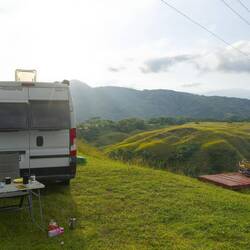 Wir haben unruhig geschlafen. Die Hunde haben die ganze Nacht um unser Buschen herum gebalgt, gebellt und gespielt. Wir machen ein gemütliches Frühstück und organisieren uns im Örtchen ein Tuktuk, welches uns zu dem Aussichtspunkt oberhalb des Örtchens fahren soll. Der Weg dorthin ist für unser Buschen unbefahrbar. Der Señor unseres Stellplatzes besorgt uns ein Tuktuk und verhandelt auch den einheimischen Preis. Wir fahren hoch und wundern uns, was dieses kleine dreirädrige Gefährt alles schafft. Steile Steigungen, riesige Felsbrocken im Weg, schlammige Streckenabschnitte. Alles wird souverän gemeistert. Oben angekommen genießen wir den atemberaubenden Blick über die Bergwelt und das Tal. Leider ziehen schon wieder die ersten Wolken auf und verhängen den Fernblick. Wir machen eine kleine Wanderung um den Felsen und lassen uns wieder runter fahren. Der Tuktuk-Fahrer nimmt zurück einen besseren, aber längeren Weg. Unten lässt er uns direkt vor der Spanferkelbräterei in der Nachbarschaft unseres Stellplatzes raus. Wir bekommen ein saftiges Stück angeboten und beschließen spontan, dort zu essen. Es ist wirklich super lecker. Danach wandern wir zu einer nahgelegenen Schlucht und laufen noch runter zum Schwefelschwimmbad. Dort werden wir von dem wütenden Gebell einiger Hunde begrüßt. Einer fällt Thomas fast an und so kehren wir um. Den Abend verbringen wir mit einem Glas Rotwein vor unserem Buschen. Die Abende sind hier lauschig und angenehm. Wir sind ja auch nur knapp tausend Meter hoch.Read more