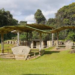 Nach einem gemütlichen Frühstück im Garten laufen wir zum Ausgrabungsgelände. Lukas, der Husky des Campingwirts begleite uns und will partout nicht zuhause bleiben. Es ist früh genug, dass wir zu den ersten Besuchern gehören. Wir schlendern durch den Wald und bewundern kleine und große Stählen. Dann kommen wir auf den Hauptplatz in dem eindrucksvolle Gräber mit steinernen Wächterfiguren stehen. Diese präkolumbianische Kultur ist sehr alt. Sie war zwischen 2.000 vor Christi bis 1.000 nach Christi. Zwischen Null und etwa 900 n. Chr. hatte sie ihre Blütezeit. Man kennt eigentlich nur die steinernen Figurfunde und kleine Relikte der Siedlungen, welche mehrere Tausend umfasst haben. Sonst ist nicht viel bekannt. Es gibt nicht mehr Funde als in der Gegend von San Augustin. Also alles noch sehr unerforscht und mysteriös. Wir wandern vorbei an Wasserfällen bis zur letzten Ebene auf der wieder die steinernen Grabwächter stehen. Von hier hat man eine tolle Sicht in die Berge, welche leider wolkenverhangen sind. Auf dem Rückweg machen wir noch einen Stopp und gönnen uns einen Kaffee. Es ist Nachmittag als wir auf unserem Stellplatz ankommen. Wir sind hungrig und müde gelaufen. Von dem Essen gestern haben wir uns Fleisch einpacken lassen. Es war eine solche Riesenportion, dass wir es nicht aufbekommen haben. Heute machen wir uns einen leckeren Tomaten, Zwiebel, Knoblauch, Gurke und Paprika Salat. Dazu gibt es das restliche Bratenfleisch kalt und als Nachtisch eine Grenadilla. Sehr lecker und ausnahmsweise gesund. Wir laufen noch ins Örtchen und holen uns Bargeld am Automaten für die noch restlich verbleibenden Tage in Kolumbien, welche überschlagsmäßig noch acht Tage sein werden. So schnell vergeht die Zeit. Wir schwatzen uns in der Bäckerei noch super frische Croissants direkt aus dem heißen Ofen ab und die obligatorischen Maiskringel. Zurück am Stellplatz gibt es diese zusammen mit einer Tasse Kaffee. Es ist super lecker. Das Croissant ist mit Käse und Guavenmarmelade gefüllt. Sehr lecker. So geht ein schöner und eindrucksvoller Tag zu Ende.Read more