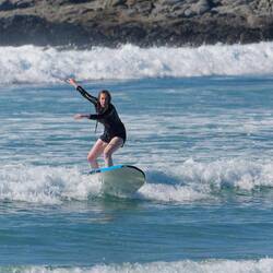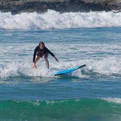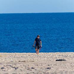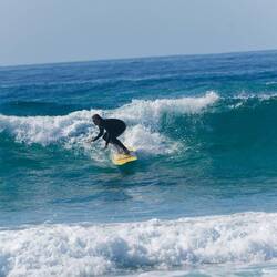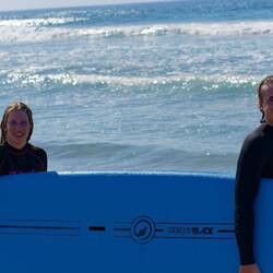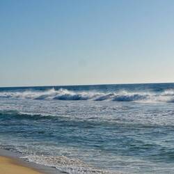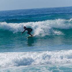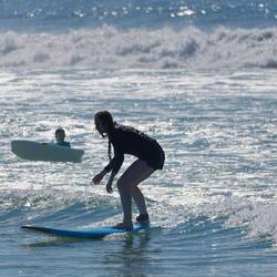 Nach einem gemütlichen Frühstück geht es an den Strand und die Kinder leihen sich Surfbretter aus. Philipp meint, die Wellen seien gut. Nicht zu hoch, nur ein wenig zu schnell getaktet. Er bringtLeggi altro