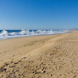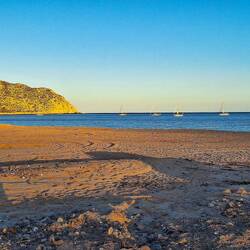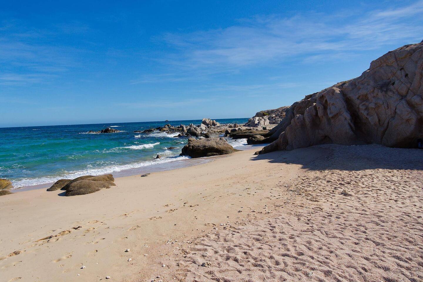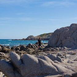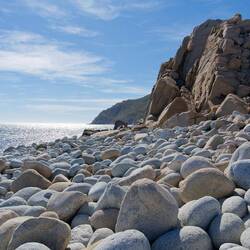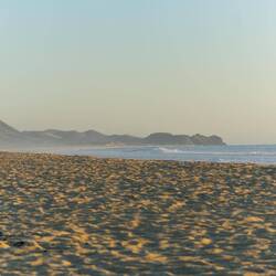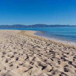 Am nächsten Morgen stellen wir uns etwa weiter vor der Mauer auf sicheren und festen Untergrund. Keine weiteren Sandexperimente. Der Tag vergeht mit einer Strandwanderung an der endlos langen gelbenLeggi altro