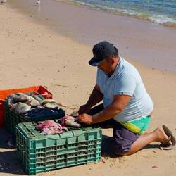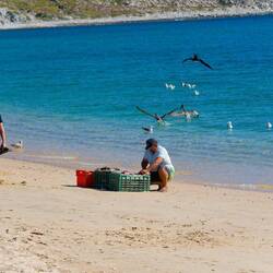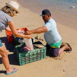 Am nächsten Morgen kommen die Fischer mit ihren Nachtfang rein und wir kaufen ihnen 4 Fische ab, welche sie uns fachmännisch am Strand filetieren. Daraus machen wir Ceviche, was sich jedoch alsLeggi altro