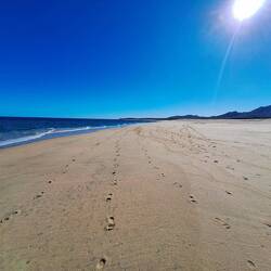 Wir fahren am Arbolitos Strand vorbei und beschließen dort noch einen Stopp zu machen, da wir ja ursprünglich geplant hatten, dort zu bleiben. Die Anfahrtstraße ist sandig aber machbar. Am StrandLeggi altro