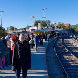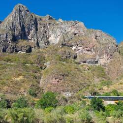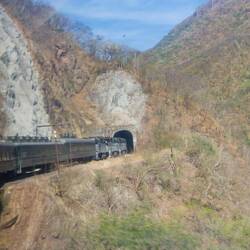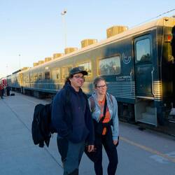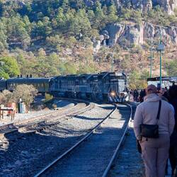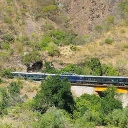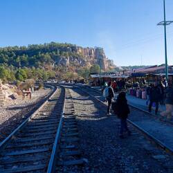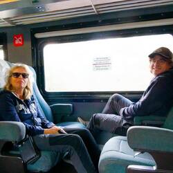 Wir warten mehr als eine Stunde auf den Zug. Gut das wir so viel Zeitpuffer zu unserer Fähre haben. Sonst wären wir schon nervös geworden. So genießen wir die langsam zuckende Bahnfahrt ins Tal.Leggi altro