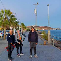 Nach einer ruhigen Nacht in den Kaktusfeldern ruft uns unser Gastgeber einen Uber. Dieser kommt pünktlich, und so lassen wir unser Buschen zurück und fahren zum Hafen. Dort checken wir mit unserenLeggi altro