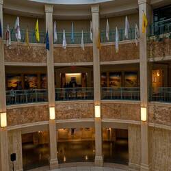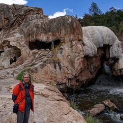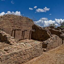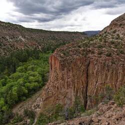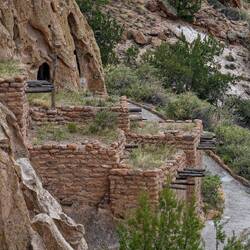Es wird richtig kalt in der Nacht, die Temperatur fällt auf unter 9°C, wir machen am Morgen erst einmal die Heizung an. Nach dem Frühstück fahren wir nochmals nach Santa Fe, wo wir heute das State Capitol besichtigen wollen. Wir parken wieder genau am selben Platz wie gestern und gehen in die andere Richtung zum Capitol. Es ist eines der wenigen in den USA ohne Kuppel. Stattdessen ist es rund gebaut (daher auch der Name „Roundhouse“) und symbolisiert die Sonne des Staatswappens von New Mexico, bei der aus der runden Mitte in alle vier Richtungen jeweils vier Strahlen ausgehen. Vier ist für die Pueblo eine wichtige Zahl, sie steht für die vier Jahreszeiten, die vier Himmelsrichtungen, die vier Lebensalter (Kindheit, Jugend, Erwachsenendasein und Alter) etc. Es gibt keine Führung, sondern man bekommt eine Broschüre und kann dann selbst herumgehen. Man startet in der zentralen Rotunde, mit dem Staatswappen auf dem untersten Boden, man hat Zutritt zu den Besuchertribünen des Senats und des Repräsentantenhauses, alles sehr schön und wenig pompös, eher bescheiden, aber sehr sympathisch. Wir gehen zurück zum Buschen und fahren weiter, zunächst zum White Rock, einem Aussichtspunkt mit Blick über einen Canyon und bis weit über die Ebene und in die Berge und dann zu unserem Ziel für heute Abend, dem Bandelier National Monument. Das ist ein Canyon, in dessen Gestein sich viele natürliche Höhlen gebildet haben, in denen sich in präkolumbianischer Zeit (zwischen 1200 und 1550) die Pueblo-Indianer angesiedelt haben. Zudem gibt es viele Ruinen aus dieser Zeit, alles nur die Grundmauern. Man sieht rund gebaute Kultstätten („Kiva“), aber auch (viereckige und kleinere) Wohn- und Lagerhäuser. Sehr interessant und hier besonders wichtig, das sind eben andere Zeitskalen als in Europa. Der Campingplatz ist oben, so daß wir in den Canyon hinunterwandern. Da sind schon einige Höhlenbauten zu besichtigen. Weiter geht es dann am Talgrund entlang bis zu einer besonders großen Höhle, die zudem über eine sehr hohe Leiter zu erreichen ist. Das ist schon sehr interessant. Allerdings ziehen dunkle Wolken auf, so daß wir für den Rückweg eher die Beine in die Hand nehmen müssen. Da geht es nun ja bergauf, aber wir schaffen es trocken zum Buschen. Es gibt dann zwar ein paar Tropfen Regen, aber nicht sehr viel. In der Nacht regnet es dann doch noch etwas und wieder ist es eher kühl.Leggi altro